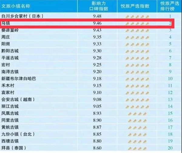 作为国内特色小镇的翘楚,乌镇已经成为“特色小镇”的范例,其在全球影响力和营收方面表现非常优异,“乌镇模式”也被奉为圭臬。最新的《2018亚太最美文旅小镇总榜 TOP20》中,乌镇排名第二,是国内上榜小镇中的第一。