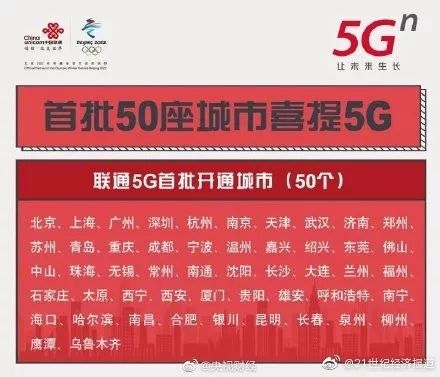 据悉,共有50个城市入选5G首批开通城市名单,即北京、上海、广州、深圳、杭州、南京、天津、武汉、济南、郑州、苏州、青岛、重庆、成都、宁波、温州、嘉兴、绍兴、东莞、佛山、中山、珠海、无锡、常州、南通、沈阳、长沙、大连、兰州、福州、石家庄、太原、西宁、西安、厦门、贵阳、雄安、呼和浩特、南宁、海口、哈尔滨、南昌、合肥、银川、昆明、长春、泉州、柳州、鹰潭、乌鲁木齐。