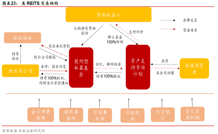 类REITs与CMBS不同,涉及对标的物业的权益投资和股权转移,此模式下,底层资产是私募基金的分红权。