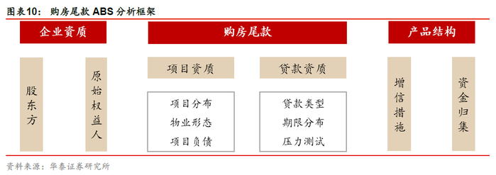 对购房尾款ABS的分析分为主体信用分析、基础资产质量和产品结构三部分。