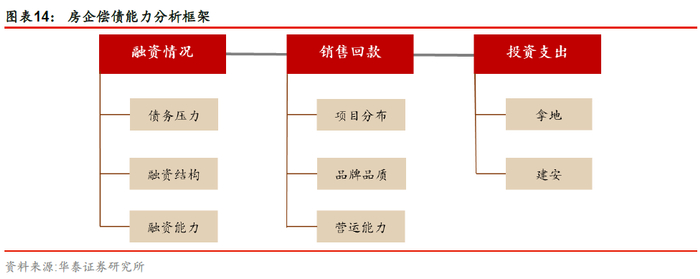 房企的土储分布、品牌效应及营运能力影响房企的销售回款情况。拿地和建安支出是房企重要的资本支出项目,需要重点关注房企投资节奏的变化。