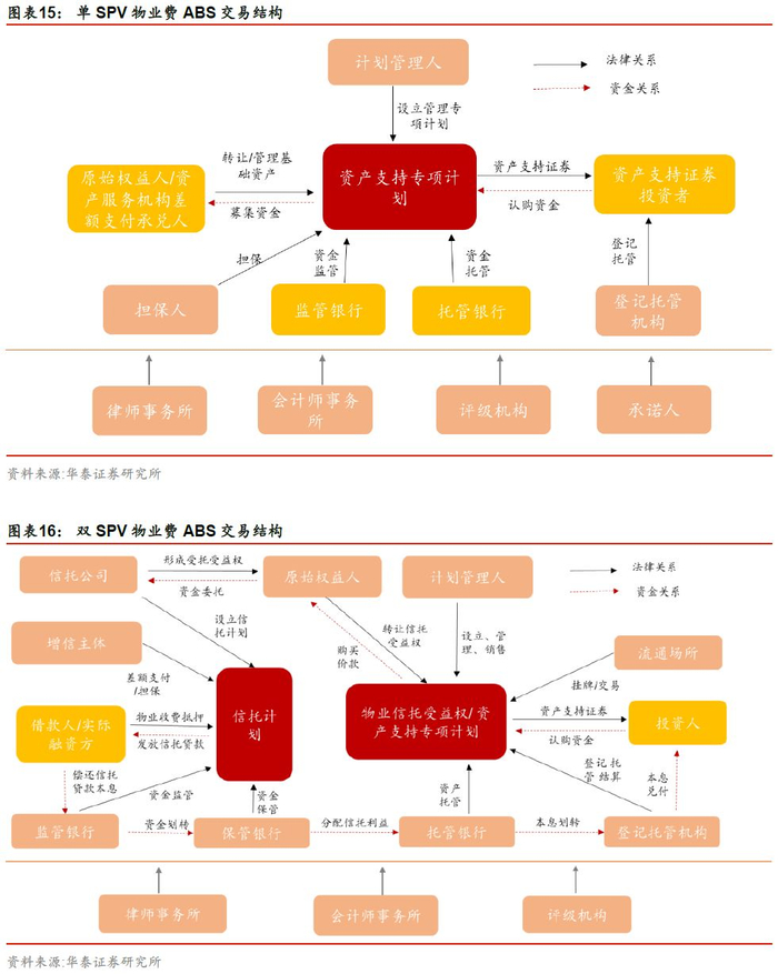 物业费 ABS 包括单层架构和双层架构两种,既可直接转让应收物业费债权的单SPV结构,也可采用信托贷款+专项计划的双层架构。