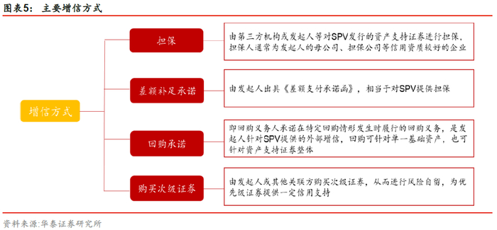 房地产ABS通常采用多样化的增信措施,以提升产品的信用评级。主要外部增信方式有担保、差额补足承诺、流动性支持、回购承诺等。从法律效力来看,担保和差额补足承诺更强。