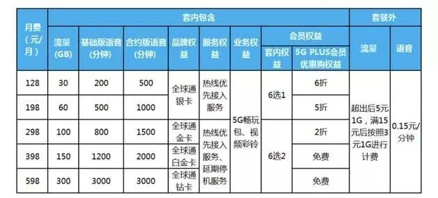 从目前三大运营商公布的套餐资费来看,最低的套餐为128元/月。