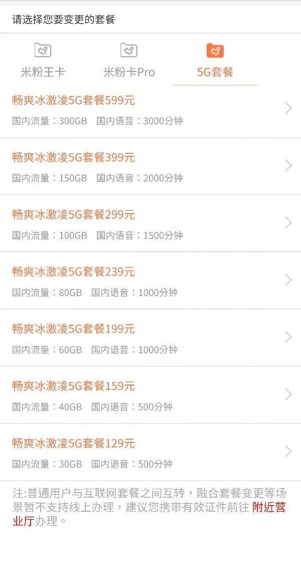 先来说说个人版5G套餐,共有五档可选: