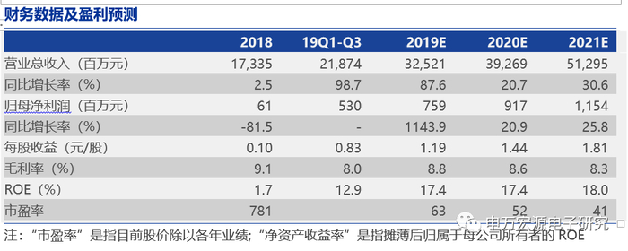 上调盈利预测,维持增持评级。闻泰科技ODM业务净利润连续两季度超预期。基于手机ODM业务改善,假设Q4不参与安世分红且不考虑资产并表,将2019/2020/2021年营收预测从亿元244/295/369亿元提升至325/393/513亿元,归母净利润预测从4.4/5.6/6.4亿元提升7.6/9.2/11.5亿元,维持增持评级。