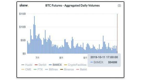 与此同时,非合规交易所 BitMex 交易量持续低迷。10 月 11 日,BitMex 日内交易量仅为 9.48 亿美元,创下数月新低。