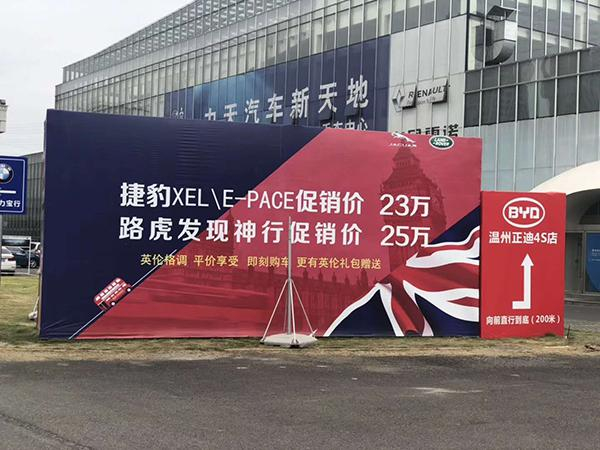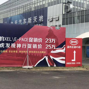 温州一家捷豹路虎4S店外靠近主干道的位置竖着一张广告牌,上面写着“捷豹XEL/E-PACE促销价25万元、路虎发现神行促销价25万元”,这个价格已经接近于大众、丰田的同级车。