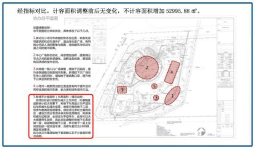 2018年,美的广场的地块在规划上进行了调整,在地块面积和容积率不变的情况下,在绿地率、建筑密度和限高上做了调整,而最重要的是增加了5.3万㎡的不计容面积。