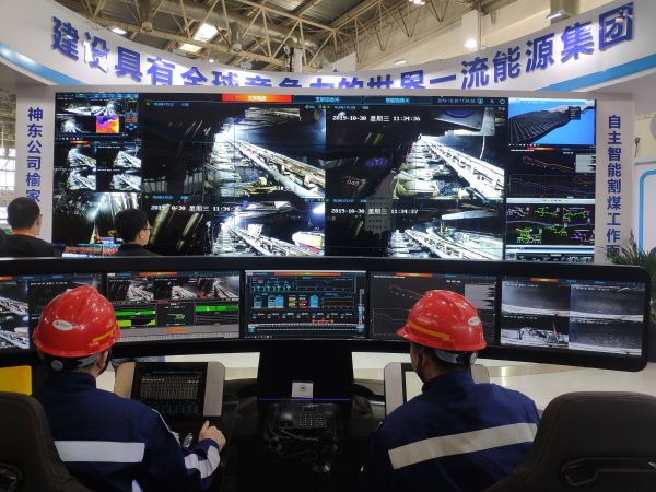 走马观花转了一圈后,记者被神东煤炭集团(隶属于国家能源集团)与天玛公司合作开发的自主智能割煤技术演示台所吸引,停下来驻足观看。