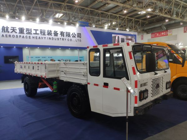 了解完自主智能割煤技术,记者又来到航天科工集团旗下的航天重型工程装备有限公司(以下简称航天重工)展区,同样大开眼界。针对传统矿山柴油车的高噪音、高污染(尾气排放会加大巷道或矿井一氧化碳浓度)、高油耗等“痼疾”,航天重工自主研发出多型矿用防爆锂电无轨运输车,不仅坚固安全,而且功能多样、驾乘舒适。