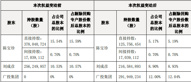 今年6月,股东陈宝珍将持有的公司10.37%股份以及董事长、总经理刘成彦持有的1.63%股份,共计12%的股份与广投集团签署股权转让协议,其二者交易总计金额高达35.03亿元。