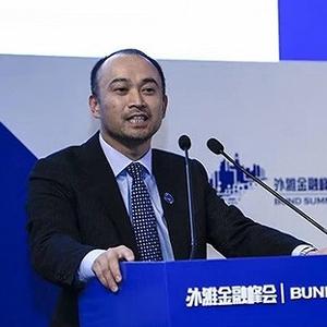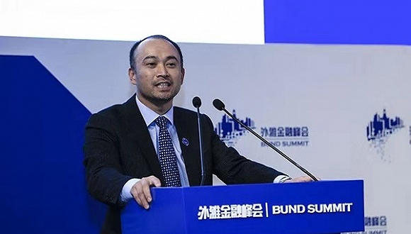 图为缪延亮在外滩金融峰会上发表主题演讲。图片来源:中国金融四十人论坛
