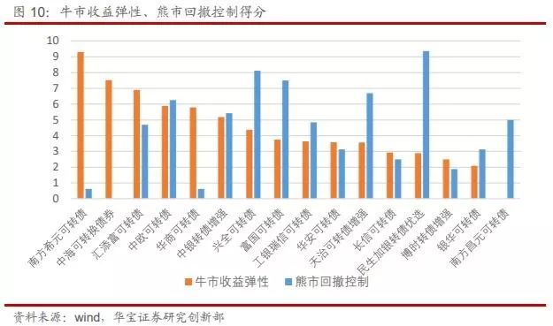 从得分结果上看,汇添富可转债在牛市收益弹性和熊市回撤控制方面能力都较突出,中欧可转债、兴全可转债、富国可转债、工银瑞信可转债两项能力上也较为均衡;南方希元可转债、中海可转换债券在收益弹性上表现较好,但回撤控制方面表现欠佳;民生加银转债精选拥有优秀的回撤控制能力,收益弹性中下水平。