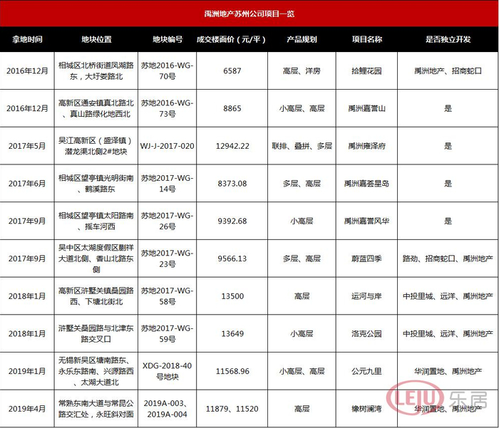 ▲禹洲地产苏州公司项目一览
