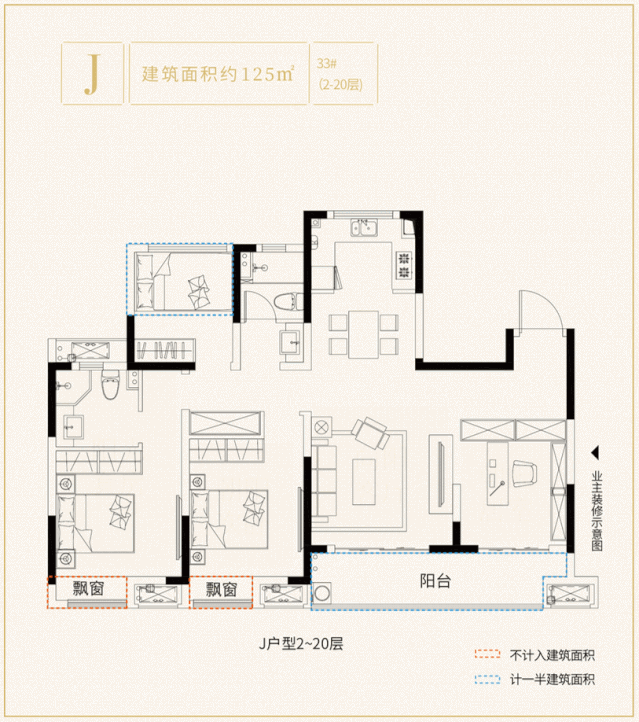 ▲禹洲·嘉誉山项目建面约125平J户型图