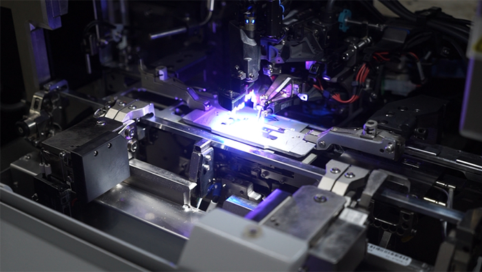 图为激光雷达生产线上的自动化高精度设备
