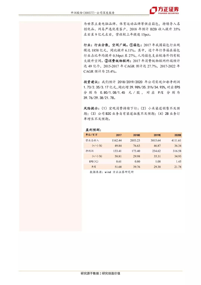 本文摘自方正证券2019年03月15日已发布的方正证券研究所研究报告《开润股份(300577):BC皆优,极速卓越(小米模式3)》