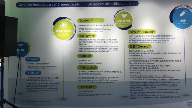 在赛诺菲展馆里,第一财经记者看到了近20款创新药品和疫苗在展示,包括:全球首个也是唯一获得美国FDA及欧盟批准治疗成人中重度特应性皮炎的靶向生物制剂Dupixent®;全球首个且目前唯一获批的基因重组流感疫苗Flublok®;首个在美国批准上市的PCSK9单克隆抗体新型降脂药Praluent®(波立达®)等。