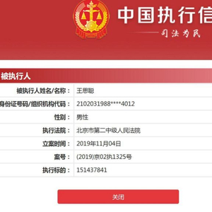 中国执行信息公开网显示,11月4日,王思聪被北京市第二中级人民法院列为被执行人,执行标的1.51亿元。