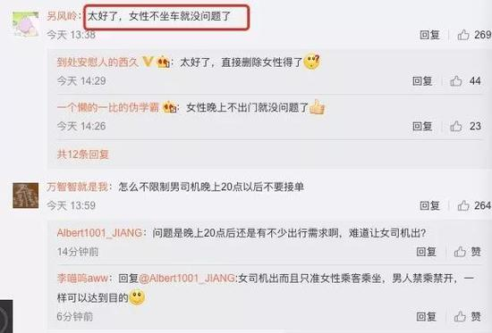 有些网友认为这条规定限制女性出行时间,对女性不公平,并质疑“怎么不限制男司机晚上20点以后不要接单”;