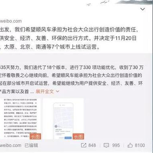 今日,滴滴顺风车在滴滴出行App公布了最新产品方案,同时宣布将于11月20日起,陆续在哈尔滨、太原、石家庄、常州、沈阳、北京、南通7个城市上线试运营。同时,滴滴方面称试运营期间,将在这7个城市首先提供5:00-23:00(女性5:00-20:00)、市内中短途(50公里以内)的顺风车平台服务。试运营期间,不收取信息服务费。