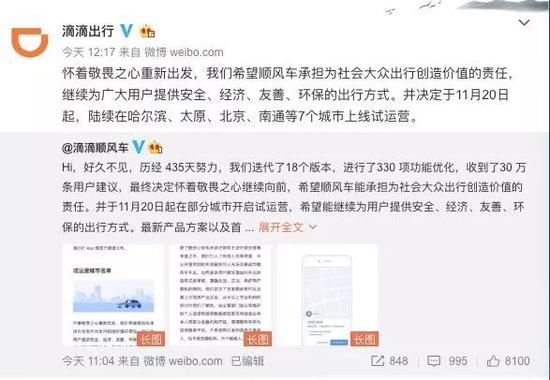 经过435天等待,今天,滴滴顺风车宣布“复活”。