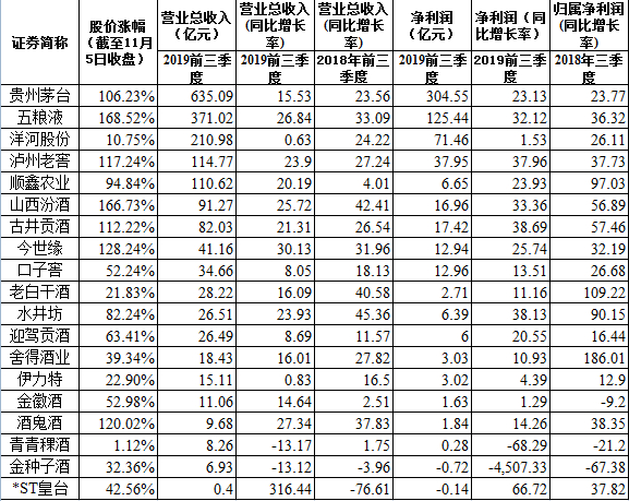 伴随着10月的落幕,19家白酒上市公司的前三季度财报已悉数披露完毕。
