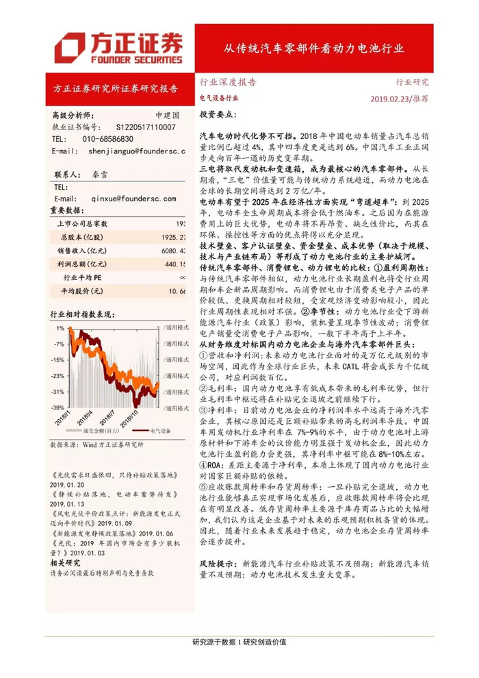 本文摘自方正证券2019年02月28日已发布的方正证券研究所研究报告《从传统汽车零部件看动力电池行业》