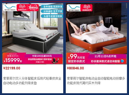 麒盛科技最为人所知的,其实就“高价床”三个字。在天猫平台上,麒盛科技子品牌索菲莉尔电动床的售价低则1万多元,高则超过8万元。