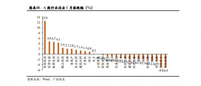 上月A股行业各有涨跌,上涨幅度最大的是农林牧渔和家用电器,涨幅分别为12.6%和4.8%;跌幅最大的有色金属和国防军工,分别累计下跌4.9%和4.8%。根据上月每日十大活跃个股数据,沪股通上月累计成交额排名前三行业分别是金融、日常消费和医疗保健,分别累计成交327.69、250.96和116.71亿元。累计净流入最多的是金融和材料,累计净流入39.14亿元和10.98亿元。累计净流出最多的行业是工业,整月净流出约10.69亿元。
