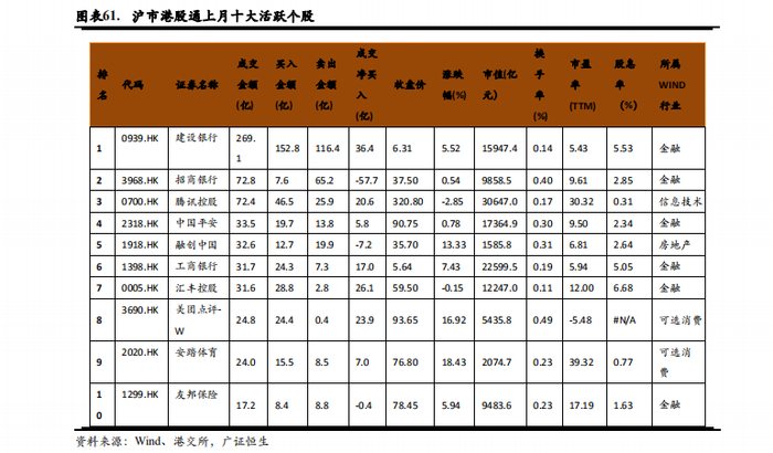 根据上月十大活跃个股数据,南下资金上月累计净流入排名前列个股分别是美团点评-W、建设银行和汇丰控股,分别累计净流入36.56、36.4和26.1亿元。上月南下资金累计净流出最多的是招商银行、融创中国和东阳光药,累计净流出57.7、6.78和2.92亿元。