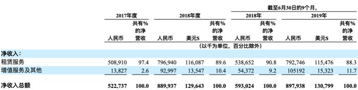 再说到造血能力,同多数分散式长租公寓企业一样,青客公寓的营收来自租赁及增值服务。其中,租赁是主要收入来源,分别占2017财年、2018财年、截至2019年6月30日止9个月营收的97.4%、89.6%、88.3%。