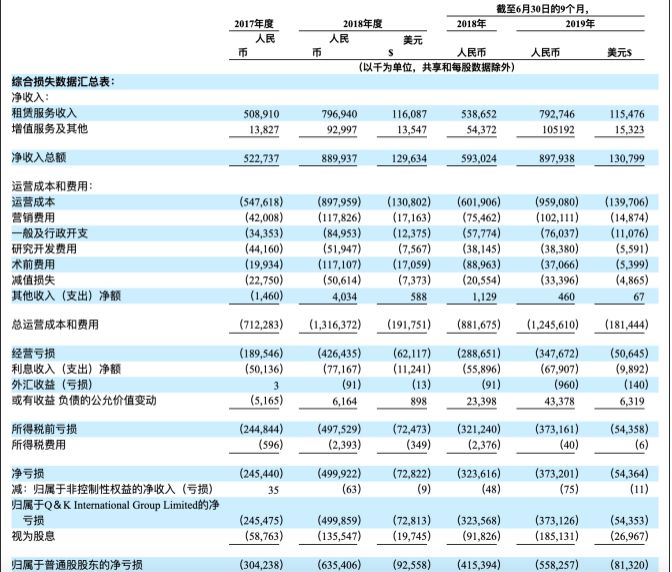 据招股书显示,2017财年和2018财年,青客公寓的租金收入(打折后)分别为5.09亿元、7.97亿元,截至2019年6月30日的前9个月,青客公寓的租金收入为7.93亿元。