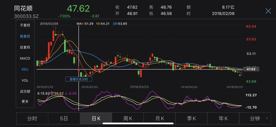 相同的剧情在2018年2月7日晚间同花顺披露新的减持计划后再次上演,公司股价在随后的两个交易日里分别大跌7.05%和6.53%,随后紧接着便是一波反弹。