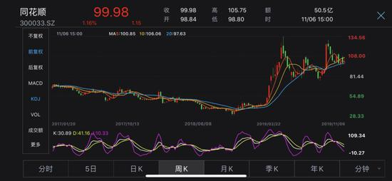不得不说,这7%多一点的股份减不完,就一直是悬在同花顺头顶上的一把“达摩克利斯之剑”。但是,从这两年多同花顺股价的走势来看,似乎并没有受到一直存在的减持计划的影响,反而在2019年连续刷新历史新高。