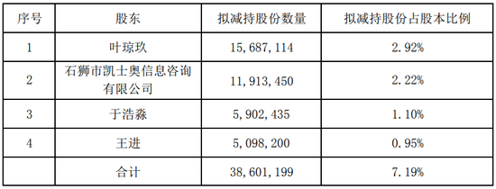 不过,同花顺又同时披露了叶琼玖、于浩淼、王进、凯士奥新的减持计划,同样是在公告起15个交易日后未来六个月内,合计减持不超过同花顺总股本7.96%的股份。
