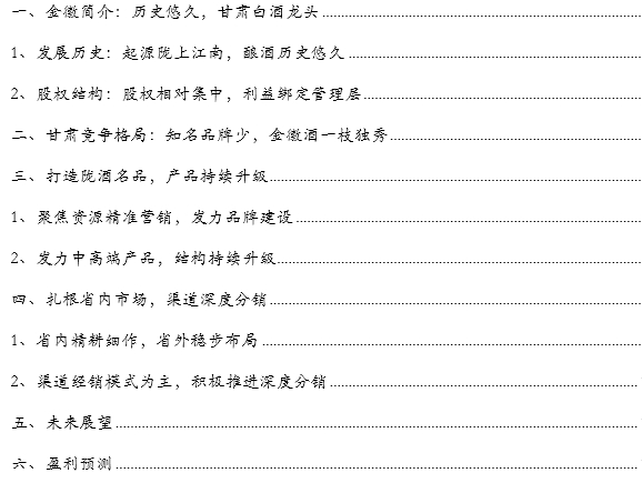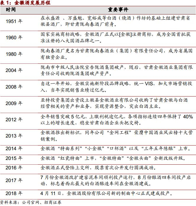文化内涵和历史积淀丰富,品牌独具特色。公司主导的产品“金徽”和“陇南春”是西北地区龙头品牌,拥有丰厚的历史底蕴和文化内涵。早在1960年,“金徽酒”商标就与“茅台”、“五粮液”等成为全国首批登记注册的8个白酒品牌之一。公司凭借自身悠久的酿酒历史,努力挖掘产品的文化内涵,并推出金徽酒正能量系列,让消费者在饮用的同时传递和谐、健康、向上的正能量。在口味方面,公司依靠自身独特的地理优势以及传承百年的酿酒工艺,形成了“窖香富郁、绵甜圆润、香味协调、香长味净”的金徽酒特色。