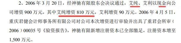 时间财经还发现,神驰机电在历次出资中存在若干问题。招股书显示,神驰机电实控人艾纯出生于1966年6月,1988年2月至1990年1月就职于重庆市江北机械厂;1990年1月至2005年任重庆市北碚区万里蓄电池经营部经理;1994年6月至2004年5月任鑫鑫机械厂厂长。