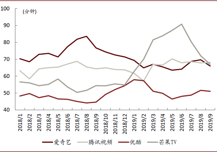 图表: 各平台单用户日均使用时长情况