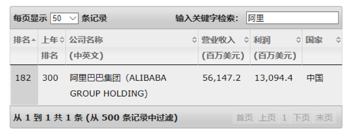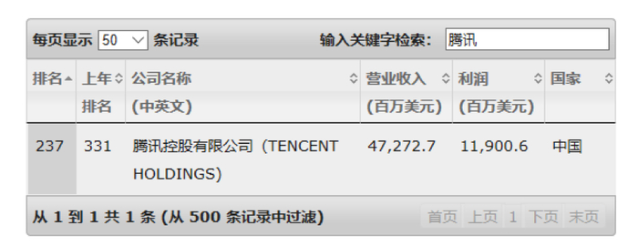 而同期的腾讯和阿里巴巴分别排在第237名和第182名。