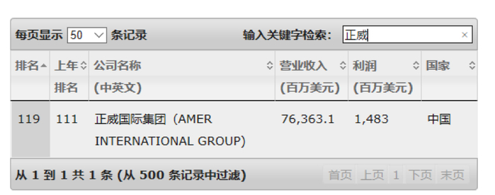 正威集团在世界五百强企业榜单中排名也超过了阿里巴巴和腾讯。根据《财富》杂志的2019年最新排名,正威国际集团排名为119名,其营收超过760亿美元,利润接近15亿美元。