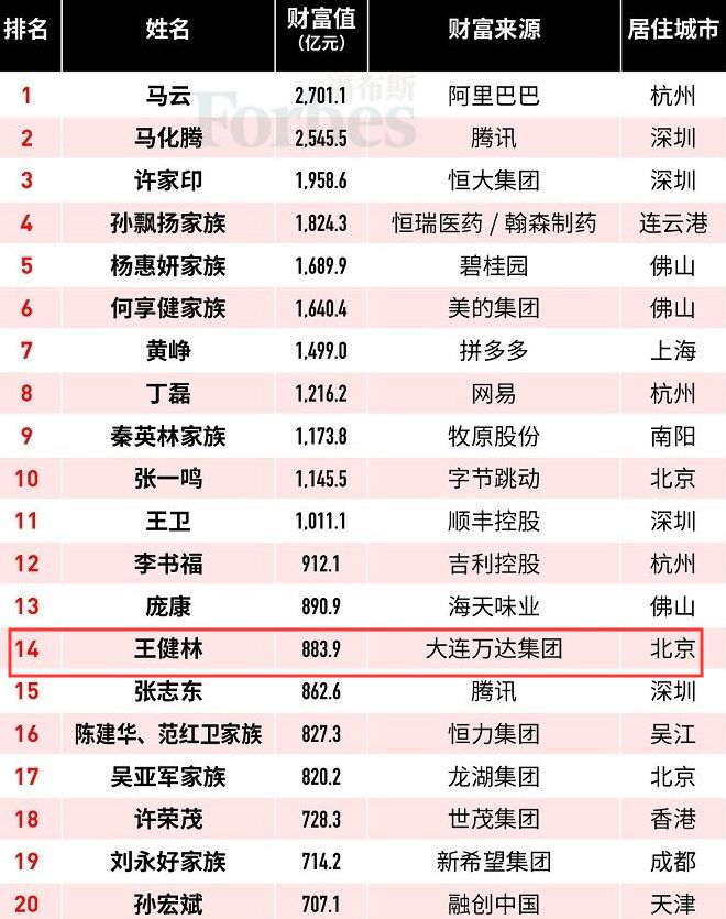 退休的马云仍然稳坐富豪榜榜首,但曾经的首富王健林,就没这么滋润了。