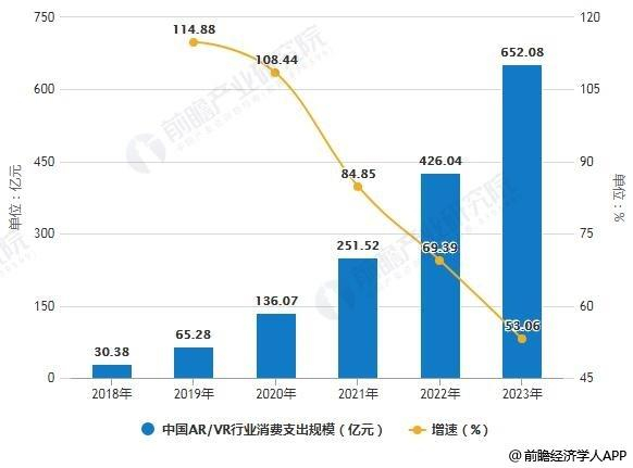 2018-20223年中国AR/VR行业消费支出规模统计及增长情况预测