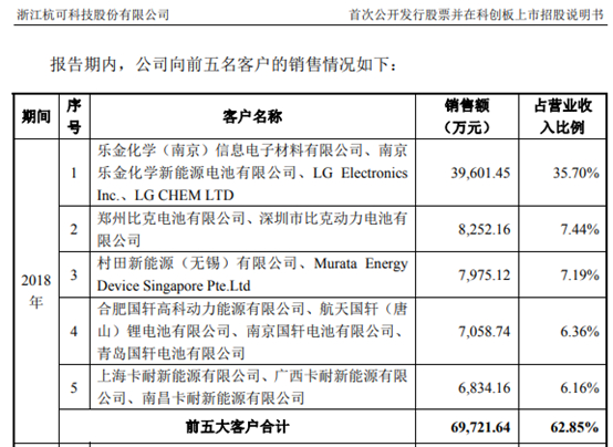 图〡杭可科技近三年的前五大客户;来源:招股书