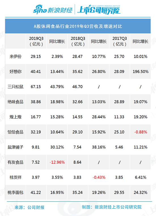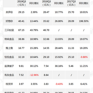 新浪财经讯 截至11月1日,A股休闲零食行业上市公司三季报全部披露完毕。