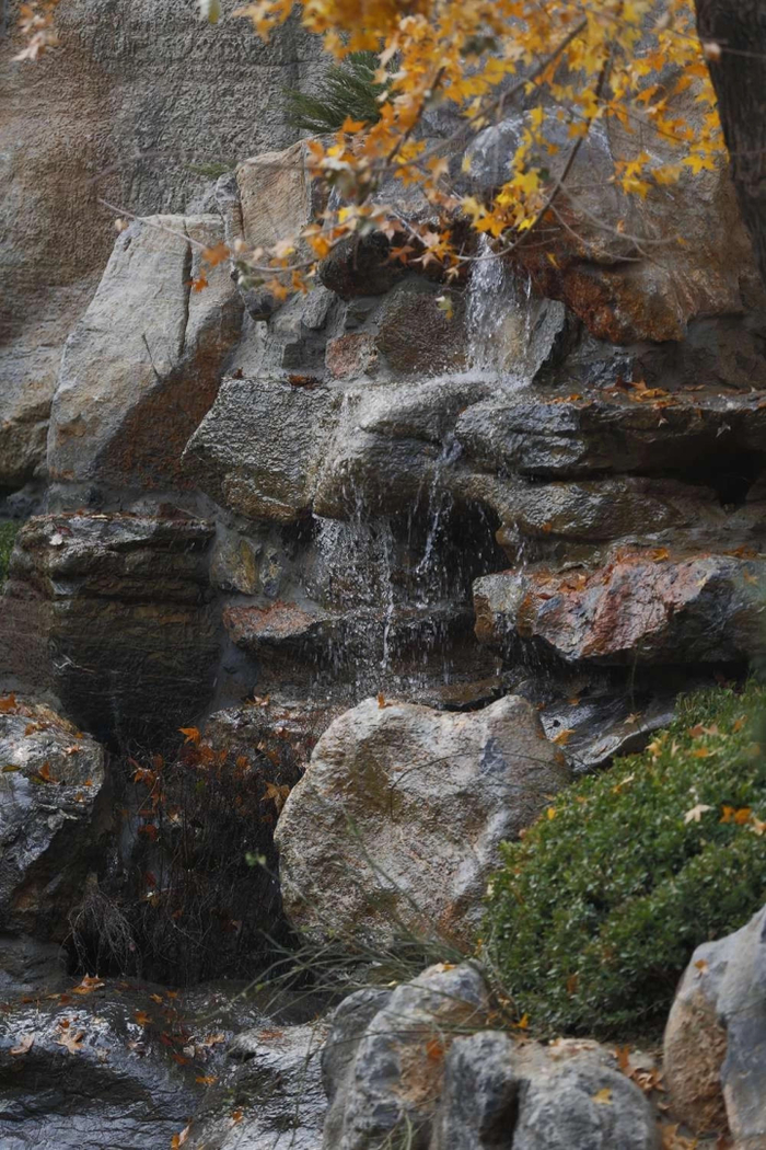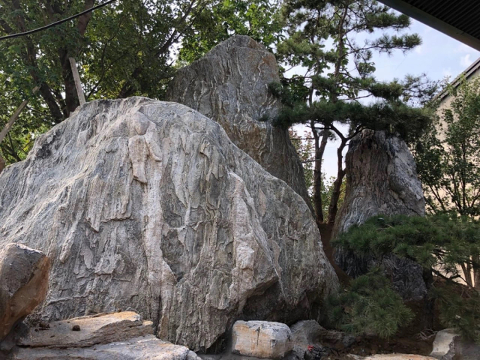 之所以选择北太湖石,是因为北太湖石既具有太湖石的灵秀,又能反应出北方人的质朴,坚韧不拔,每一块石头上的纹理就像娟娟飞流,顺势而下,宛如瀑布,恢弘磅礴。
