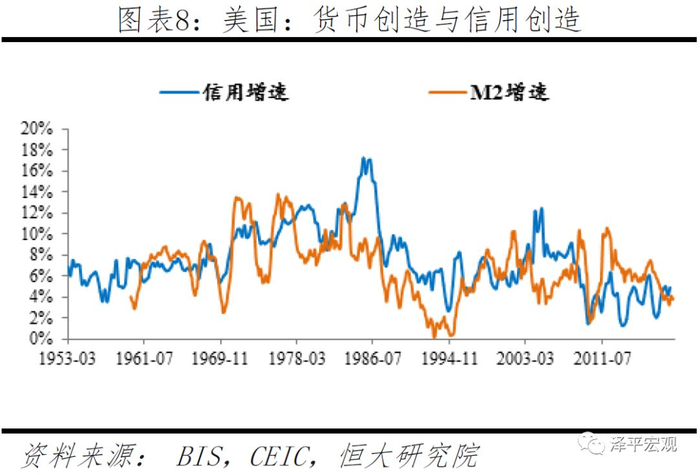 从信用创造与资产价格的关系来看,我国在金融危机之后,信用与房价相关性显著提升,而美国则是在金融危机之前,信用与房价保持较高的相关性,而在金融危机之后,资产价格的上涨以股价的形式体现出来,与实体经济导向密切相关。