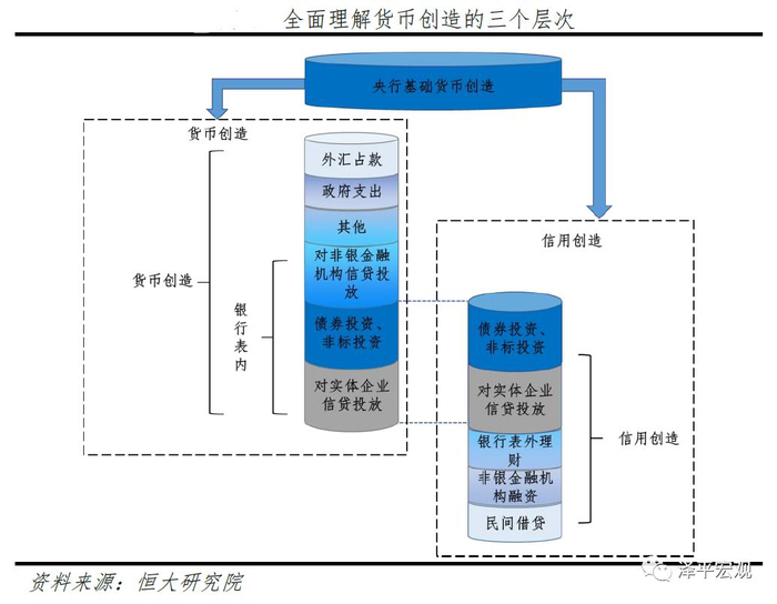 在信用货币时代下,央行进行基础货币投放后,形成了货币与信用两个相互联系而又有所区别的结果。