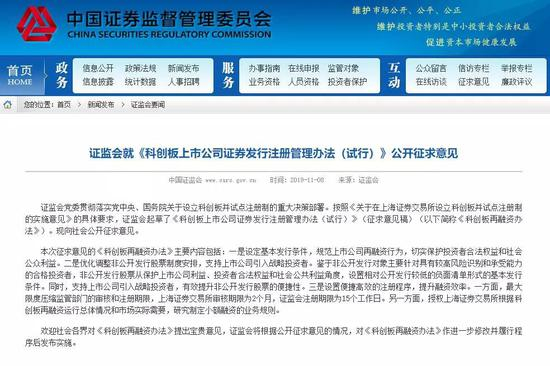 证监会11月8日就主板(中小板)、创业板、科创板再融资规则征求意见,提升再融资的便捷性和制度包容性,提高股权融资比重,精简优化现行再融资发行条件,降低硬性门槛,规范上市公司再融资行为,切实提高公司治理和财务信息披露质量。